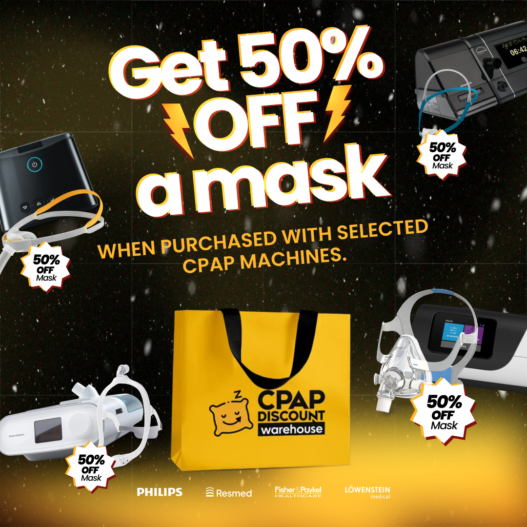 Add an eligible CPAP machine and a compatible mask to your cart. The 50% OFF mask discount will apply automatically at checkout.